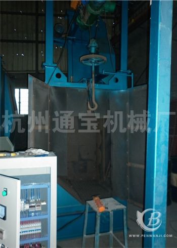 設(shè)備總高4.2M,寬1.25M;雙電機(jī)同時工作(每個7.5KW),工作期間,工作室里面的吊鉤會自動進(jìn)行旋轉(zhuǎn),這樣被處理的工件也將同時得到,均勻的拋丸,無死角現(xiàn)像。