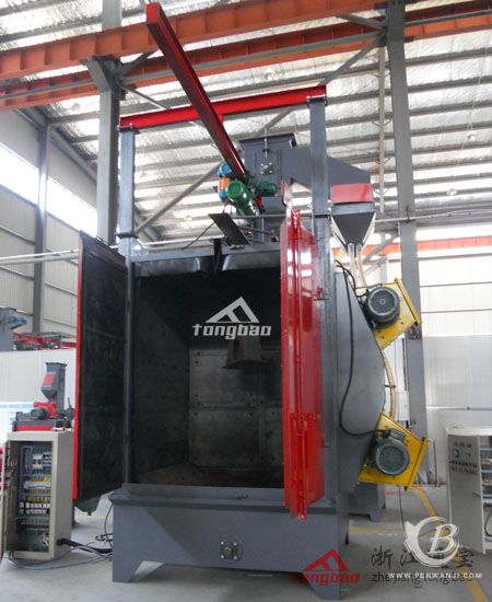設(shè)備打開工作艙門,調(diào)試吊掛產(chǎn)品拋丸處理樣圖