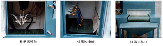 5,采用多槍噴砂,操作時,僅需將工件置于輸送帶上,即可進行自動噴砂加工。操作十分簡單方便;